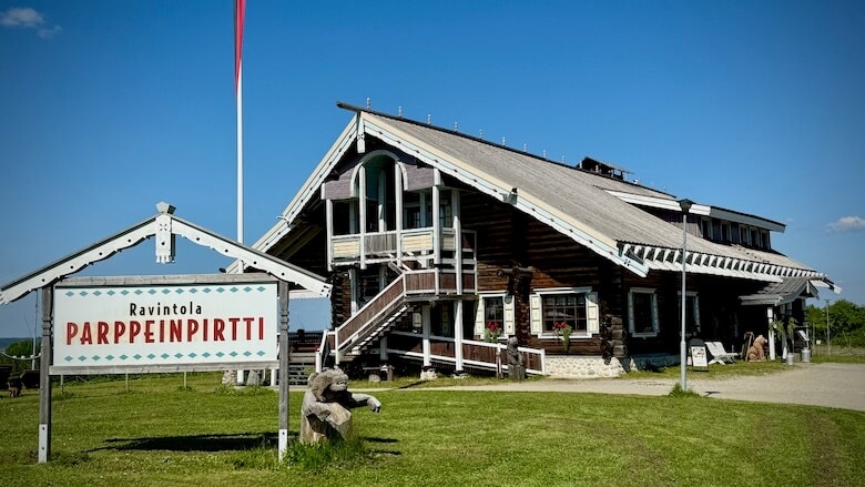 Ensimmäinen käyntikohteemme Ilomatsissa oli Parppeinvaara. Suurin rakennus alueella on hieman Nurmeksen Bomba-taloa muistuttava komea karjalaistalo Parppeinpirtti. Parppeinpirtti vaalii karjalaista ruokaperinnettä; sieltä saa muun muassa eteläsuomalaiselle vähän tuntemattomia mutta suosittuja vatruska-piiraita. Pysähdyimme siellä itsekin runsaan noutopöydän ääreen.