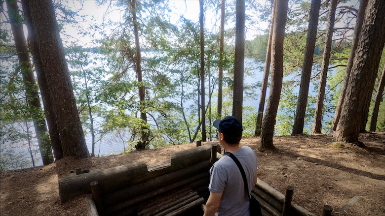 Majoituimme siellä myöhemmin teltassa ja siellä voi myös varata rantasaunan. Karavaanareiden kannattaa varmistaa sähkötolppapaikkansa etukäteen. Sielläkin on kunnostettuja taisteluhautoja ja sodan ajan korsu.