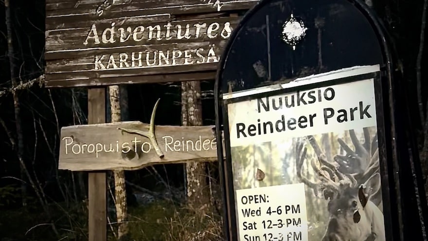 Nuuksion poropuisto Nuuksio Reindeer Park sijaitsee vain 30 km päässä Helsingistä. Puisto on osa laajempaa kokonaisuutta, johon kuuluu mm. ruokailu, majoitus , erilaisia aktiviteettipalveluita, osa Sea & Mountain Adventures Oy:tä.