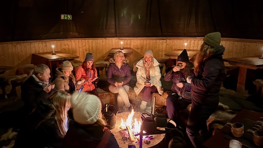 Täällä pääset syöttämään poroille jäkälää ja nauttia nokipannukahvit nuotiotulen äärellä tunnelmallisessa White Reindeer kodassa. Huom! Jäkälä ja nokipannukahvit sisältyvät lipun hintaan (joulunaikaan glögi ja pipari).